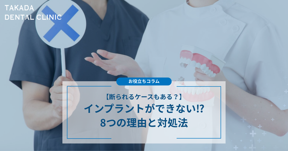 失った歯を補う治療として選ばれることが増えてきたインプラントですが、実は誰しもができる治療ではないため、歯科医院によっては「できない」と断られるケースがあるのも事実です。