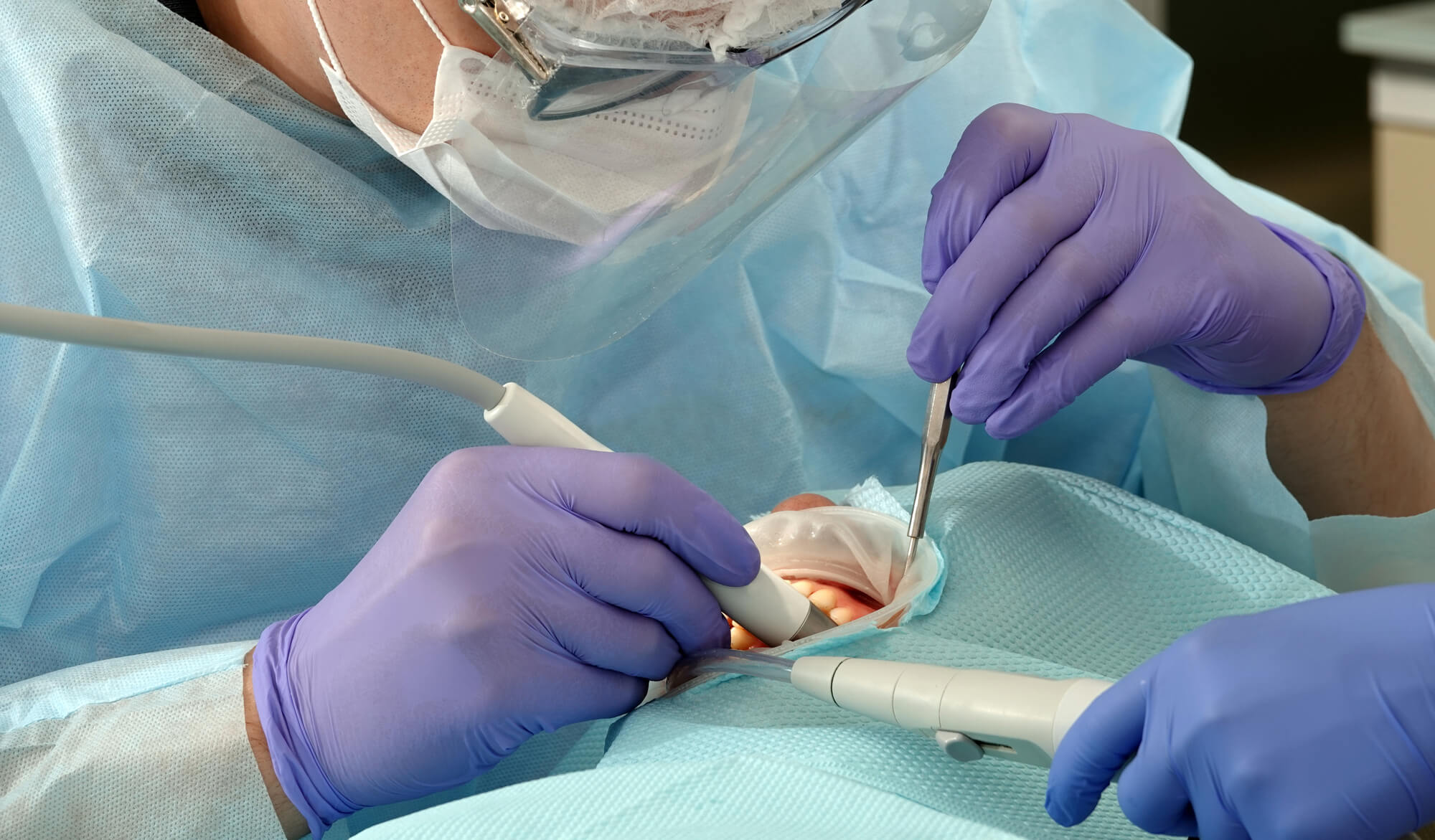 ソケットリフトでは歯茎を切開し、ドリルで骨に穴を開ける外科手術を要するため、まず初めに必ず局部麻酔を行います。